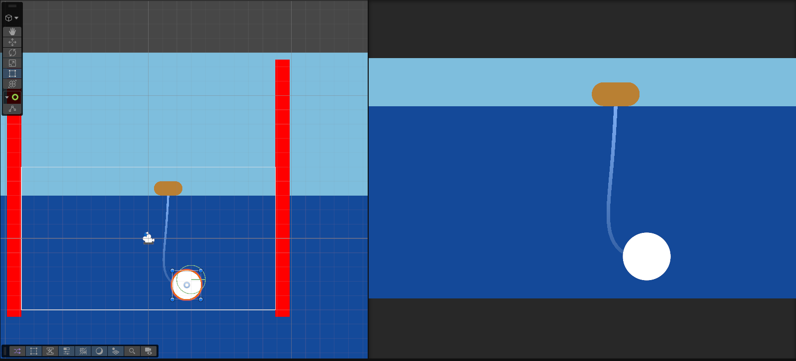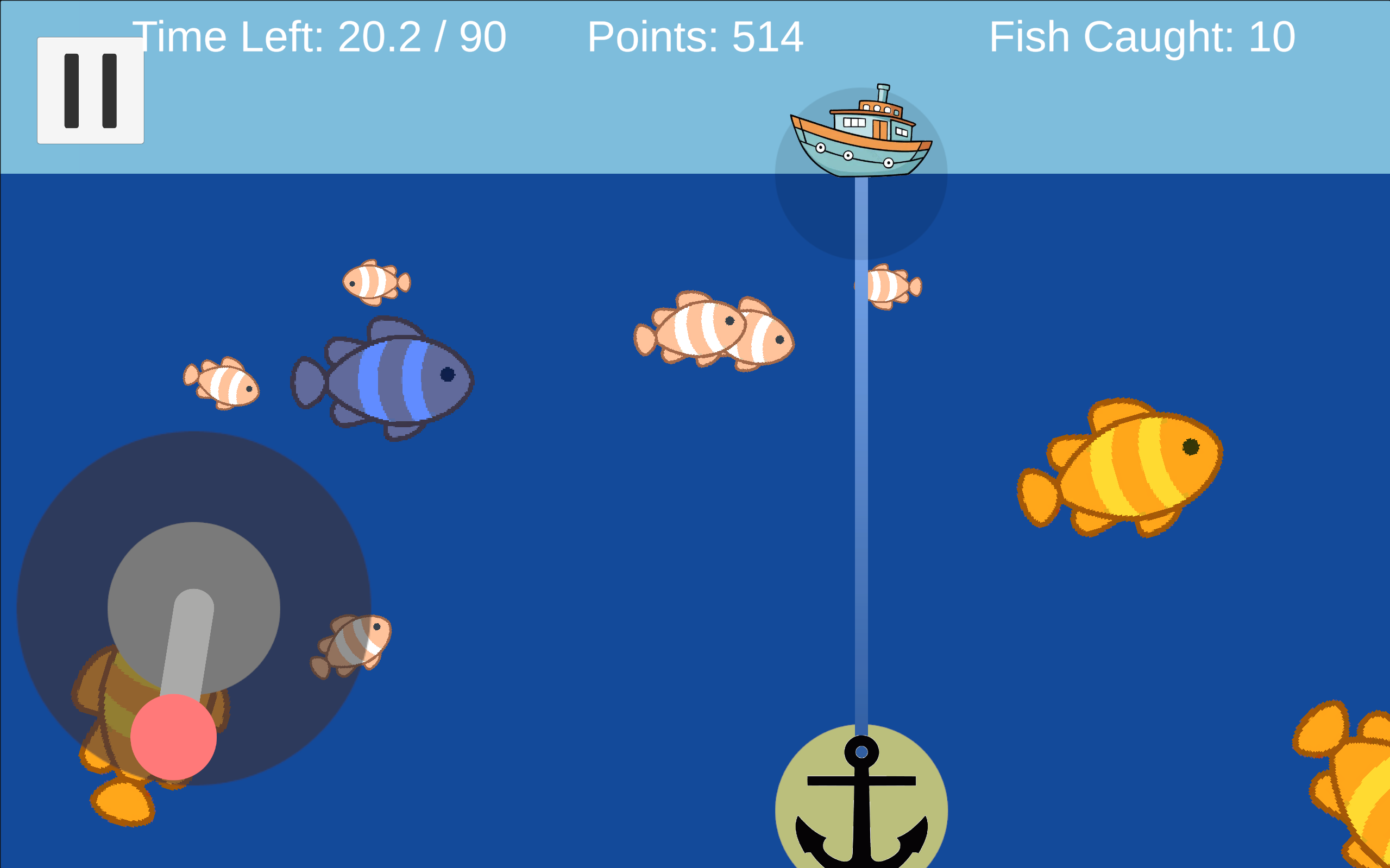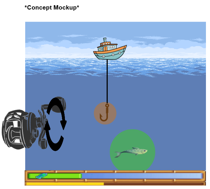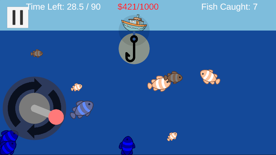 Use "A" and "D" to steer your ship left or right. When a fish is attracted to your hook, use your mouse to spin the reel up to the ship in order to bring it in for a bountiful reward!